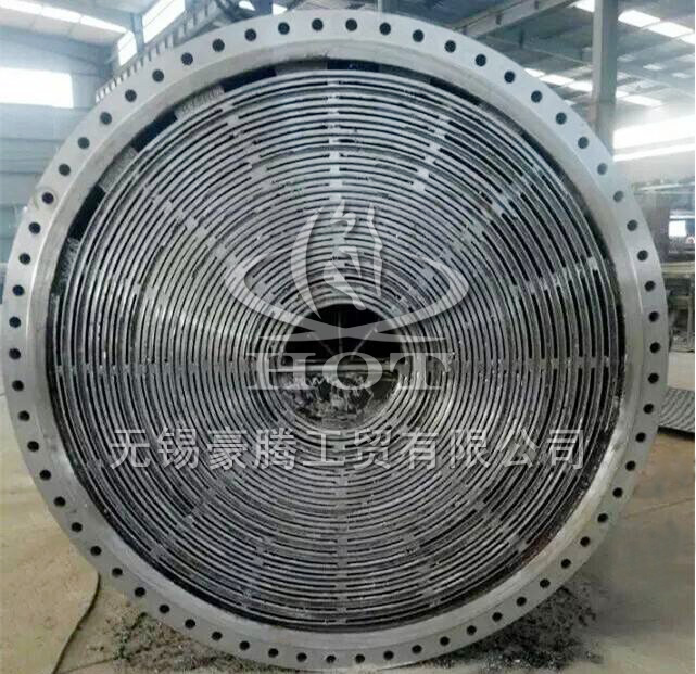 如上圖就是用于廢氣冷卻的單面可拆式不銹鋼螺旋板換熱器的實拍圖片。同樣的,如介質(zhì)雜質(zhì)較多的液體也同樣適用。